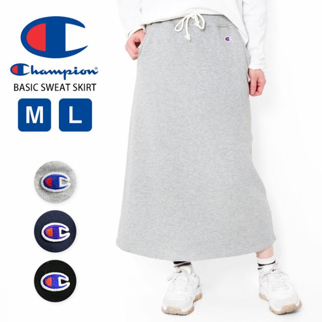 スウェットスカート ロングスカート チャンピオン Champion スカート スウェット ブランド マキシ丈 CW-Y212 グレー ブラック ネイビー M L 定番 無地 カジュアル ラク かわいい ロゴ オールシーズン 杢グレー