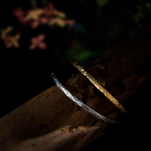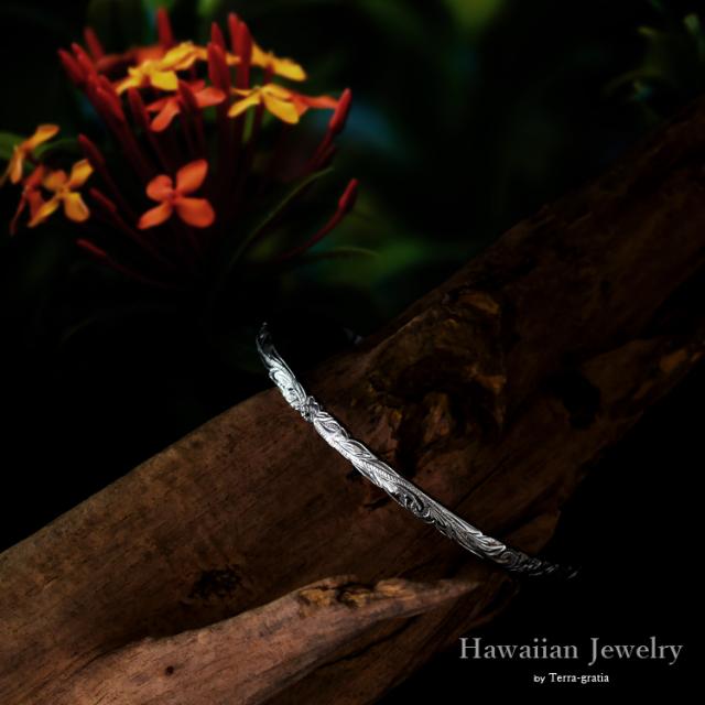 ハワイアンジュエリー ハワイアン バングル ブレスレット メンズ 刻印 ステンレス 金属アレルギー対応 サージカルステンレス つけっぱなし ホヌ スクロール スティールシルバーカラー(gbsg114st)