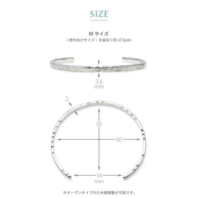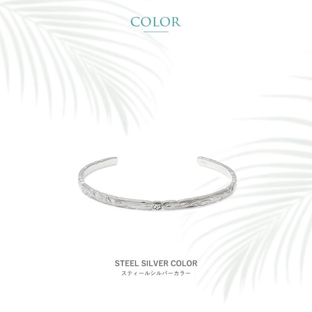 ハワイアンジュエリー ハワイアン バングル ブレスレット メンズ 刻印 ステンレス 金属アレルギー対応 サージカルステンレス つけっぱなし ホヌ スクロール スティールシルバーカラー gbsg114st