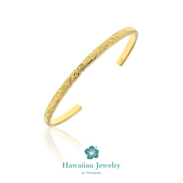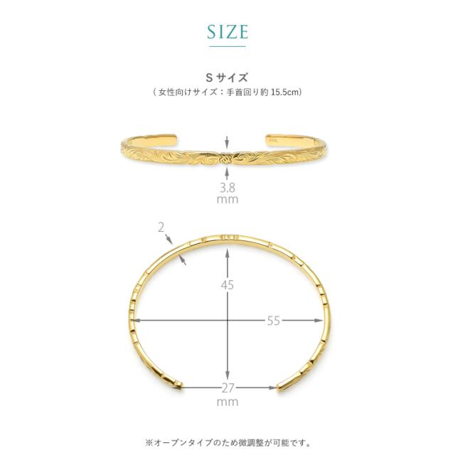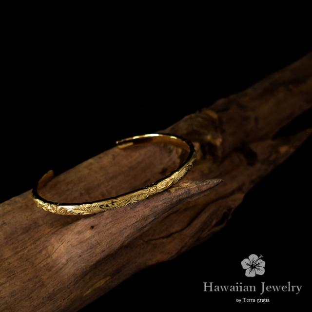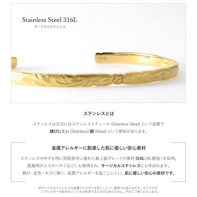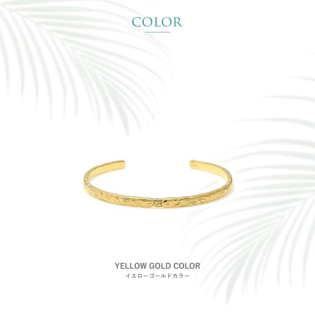 ハワイアンジュエリー ハワイアン バングル ブレスレット レディース 刻印 ステンレス 金属アレルギー対応 サージカルステンレス つけっぱなし ホヌ スクロール イエローゴールドカラー gbsg114yg