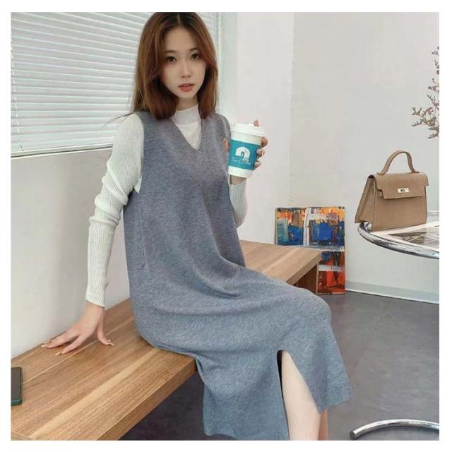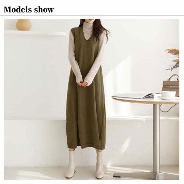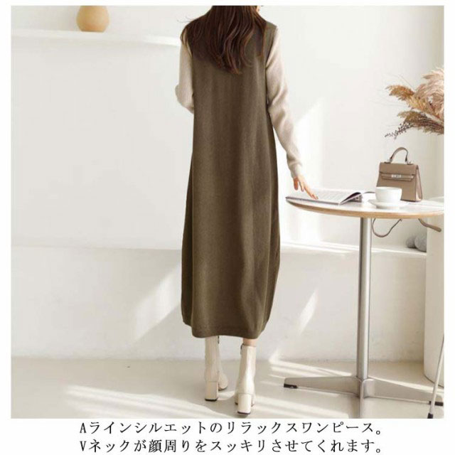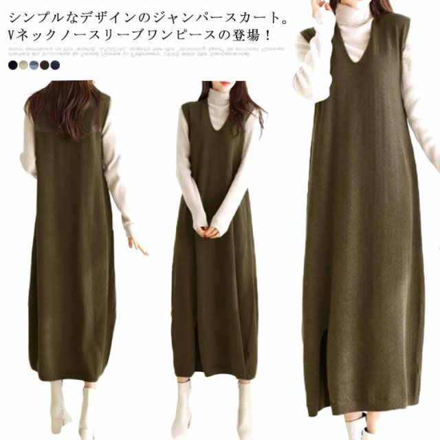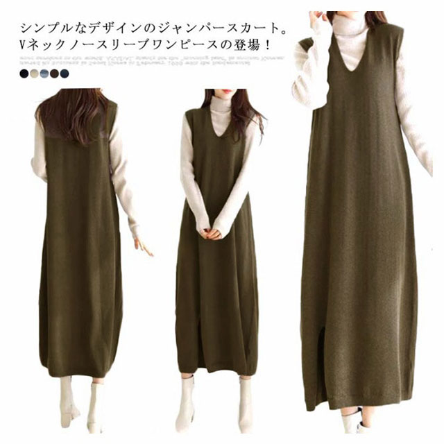 ワンピ ワンピース 秋 大人 Vネック ワンピース きれいめ スリット Aライン 深Vネック 秋冬 ロングワンピース スリット マキシ カジュアル ノースリーブ レディース 重ね着 ジャンパースカート スウェット ジャンスカ ロング 送料無料 ゆったり 体型カバー 大きめ ママ 冬
