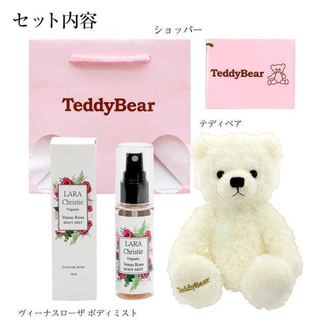 ララクリスティー ボディミスト 化粧水 ダマスクバラ ヴィーナスローザ 50ml テディベア ぬいぐるみ セット 誕生日 女性 lc96-0001-tdt-01 LARA Christie レディース プレゼント
