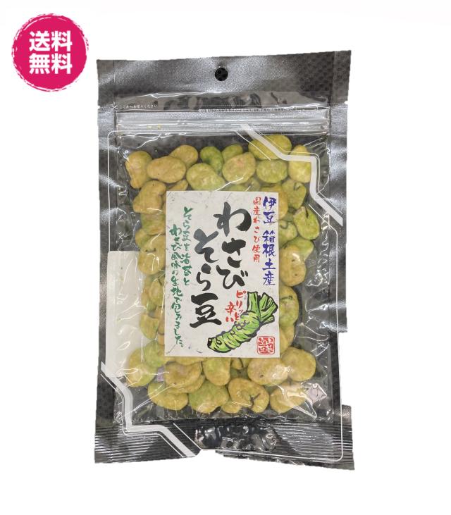 国産わさび使用 わさびそら豆 93gパック2袋 送料無料(わさび豆93g×2P)伊豆 箱根土産 チャック袋 おつまみ