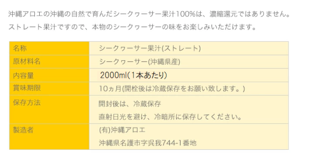 沖縄アロエのシークヮーサー果汁は、沖縄県北部の青切りシークヮーサーを100%使用し、添加物・保存料・着色料は一切使用しておりません。無添加の原液です。安心して飲んで頂けるよう、沖縄県産・契約農園・自社工場にこわだりました。