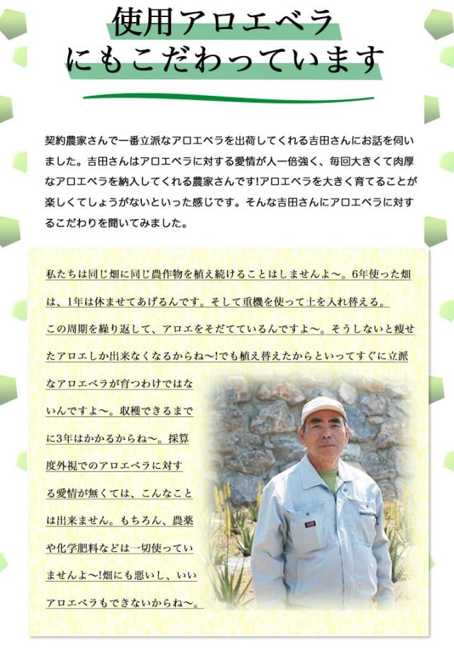 店長オススメの商品!!自社農園ですくすくと育てたアロエベラと、契約農家さんから仕入れた安心できるアロエベラのみを原料にした、こだわりのアロエベラジュースです。