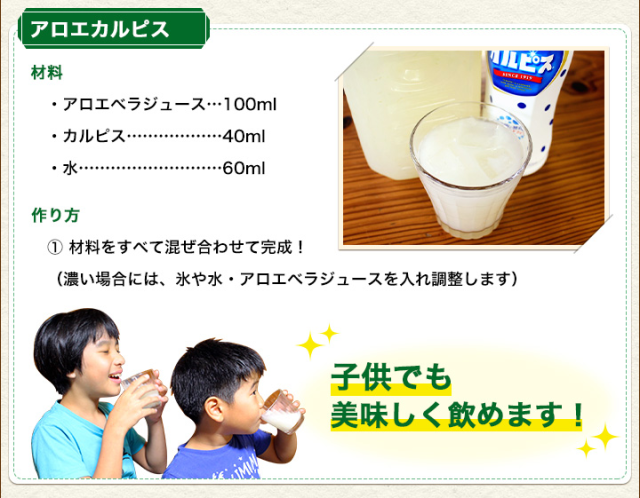 お召しがり方:そのままお飲み下さい。アロエベラのゲルも入っているのでその食感もお楽しみ頂けます。お好みで果汁を加えてもおいしく頂けます。