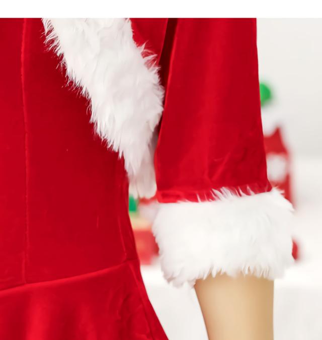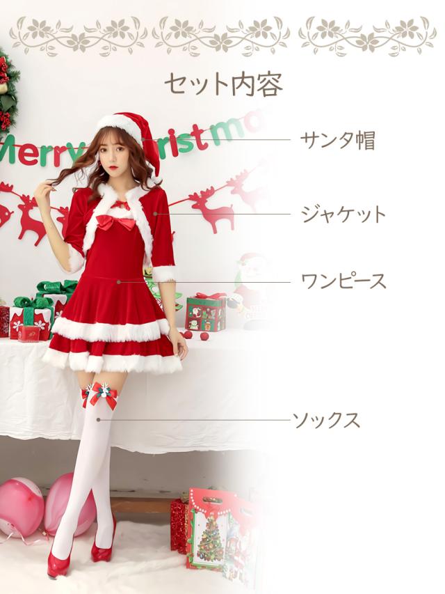 キュートサンタワンピース 3点セット サンタコスチューム サンタ レディース ミニ丈 ひざ上 フレア ミニワンピ かわいい クリスマス コスプレ 衣装 コスチューム