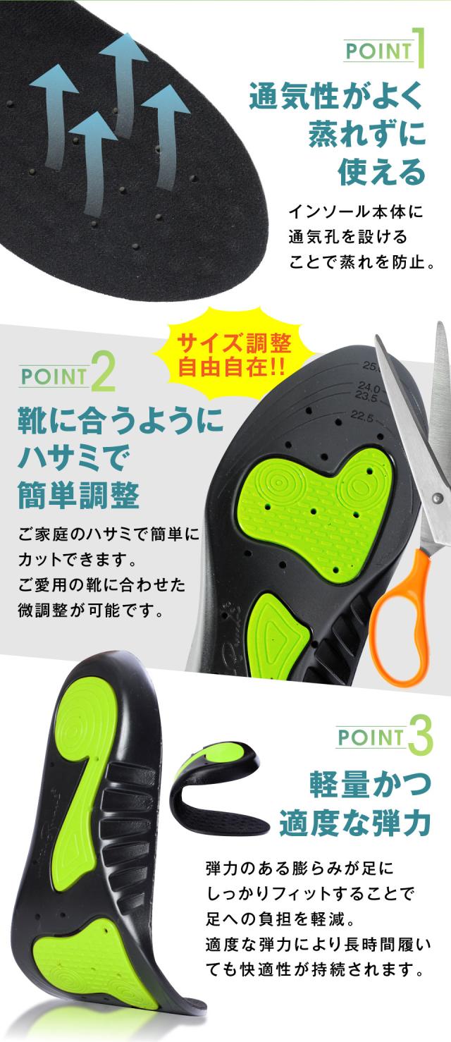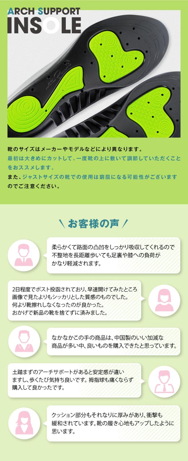 インソール アーチサポート 偏平足 土踏まず 衝撃吸収 反発 中敷き 疲れにくい 立ち仕事 スニーカー スポーツ ランニング靴