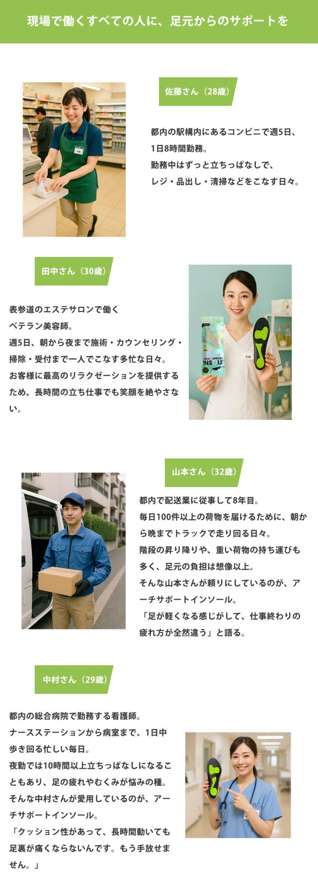 アーチサポート×衝撃吸収で、長時間の立ち仕事やウォーキングも快適に。