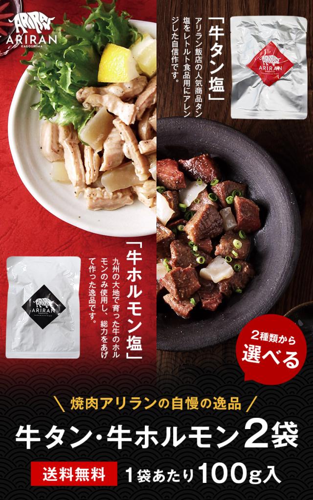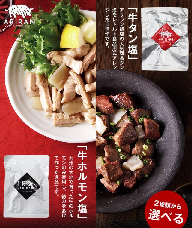 焼肉アリラン飯店の 牛タン塩 牛塩ホルモン 選べる 100g×2袋 牛肉 常温保存OK お酒の おつまみ 非常食 おかず 国産 ホルモン と 厚切り タン 旨さに訳あり 送料無料 レトルト 食品 ポイント消化 大量 [メール便]