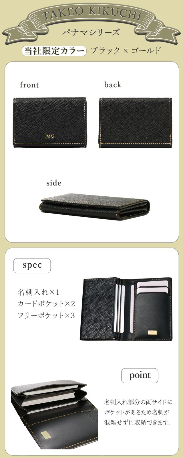 【レビュー投稿で+5%還元】タケオキクチ 名刺入れ メンズ 本革 ブランド カードケース カード入れ 牛革 レザー シンプル 大人 カジュアル 出張 ビジネス 会社 オフィス パナマ 別注 当社限定 729623 TAKEO KIKUCHI|ブラック ゴールド 風琴マチ クリスマス_mp