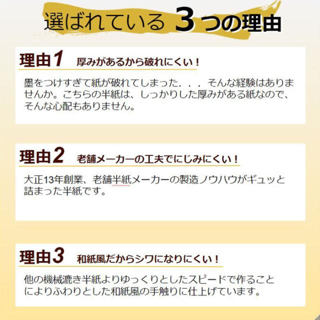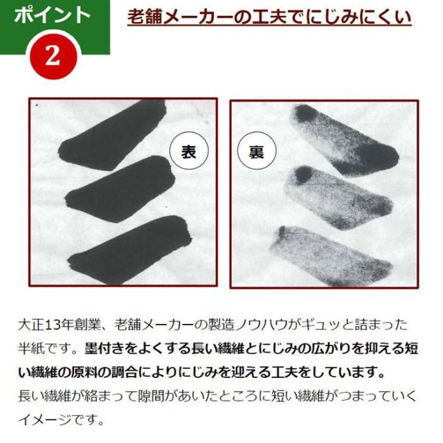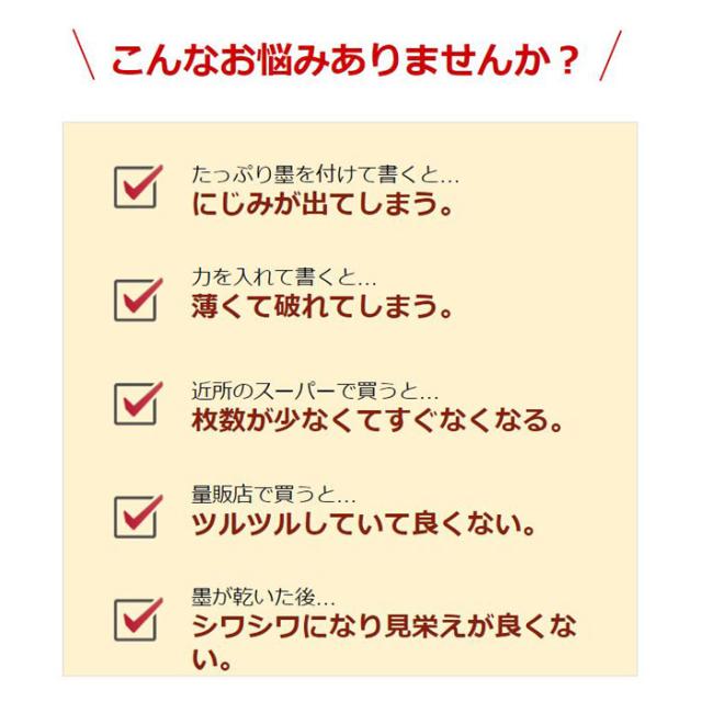 たっぷり墨を付けて書くお子様でも滲みません。破れにくく丈夫で、乾いてからも紙が縮みません。