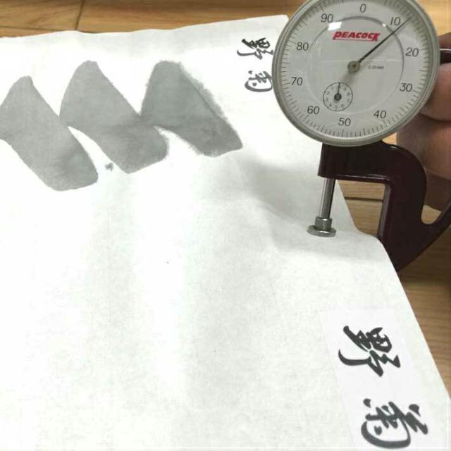 紙の重さが一般商品の1.35倍!! 厚いので墨をたっぷりつけて押さえて書く方でも破れにくいです。