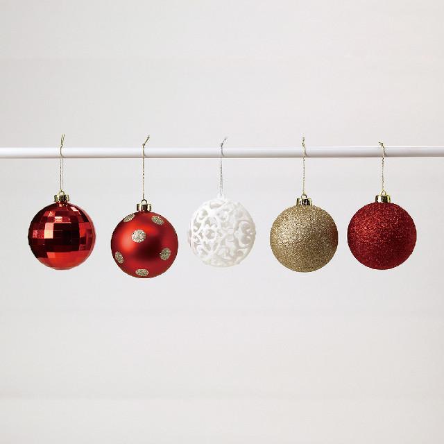 ミラーボールや透かし彫り、ラメ、ドットなど、5種類のカラーやデザインがほどこされたボールがそろっています。
