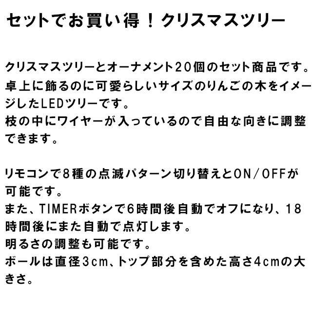 クリスマスツリーとオーナメント20個のセット商品です。