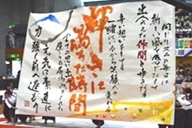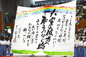 下の写真は今年行われた書道パフォーマンス甲子園の様子です。
