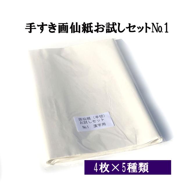 手漉き画仙紙 お試しセット 漢字用 半切 薄手 送料無料 手漉き半切の中で薄手のものを5種×4枚でお試しセットにしました お気に入りの紙を見つけて下さい。