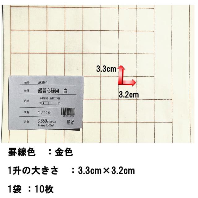 写経用紙 手漉雁皮 白色 半切 1袋10枚入 にじまない 加工紙 金罫 品番:AK39-1 | 写経 書道用品 半紙屋e-shop