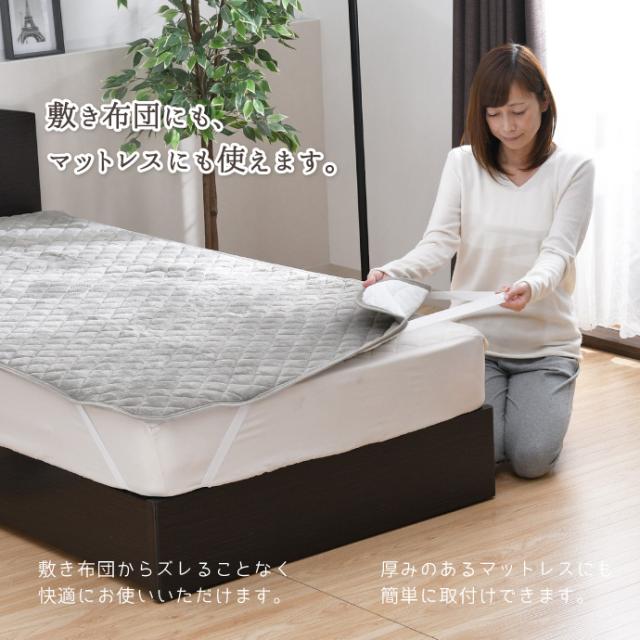 四隅ゴム付きでずれにくく、敷き布団はもちろんマットレスにもお使い頂けます