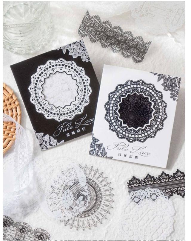珍しい 透明 レース ステッカー ホワイト ブラック フレークシール やや大きめ ◆30枚 全8タイプ◆レースシール 白 PET クリア 枠 花 フラワー 海外 ジャンクジャーナル コラージュ素材 デコレーション 素材 手帳デコ デコ素材 おしゃれ 透明シール 透明ステッカー
