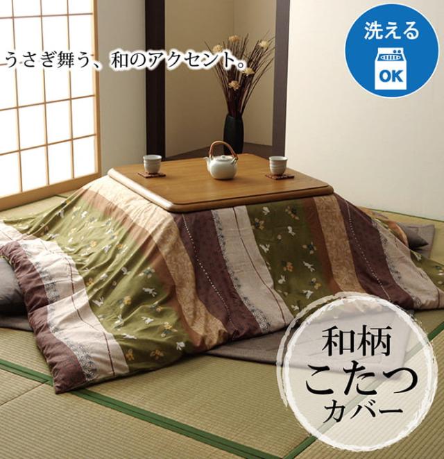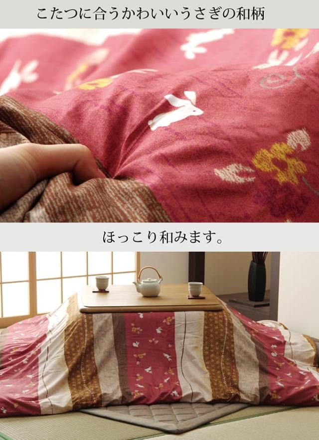 和柄のこたつ布団カバー こよみ 正方形 215×215cm 送料無料 こたつ布団 こたつ敷き 敷布団 掛布団 和柄 うさぎ柄 和モダン ポリエステル マッシュロンわた ピーチスキン キルティング加工 保温 あったか 洗濯機不可