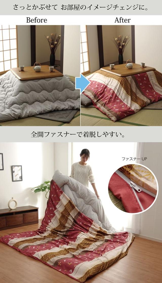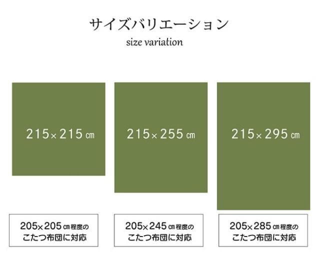 | サイズ | 約215×215cm 【適応こたつふとんサイズ】 約205×205cm程度のこたつ布団に適応 |
