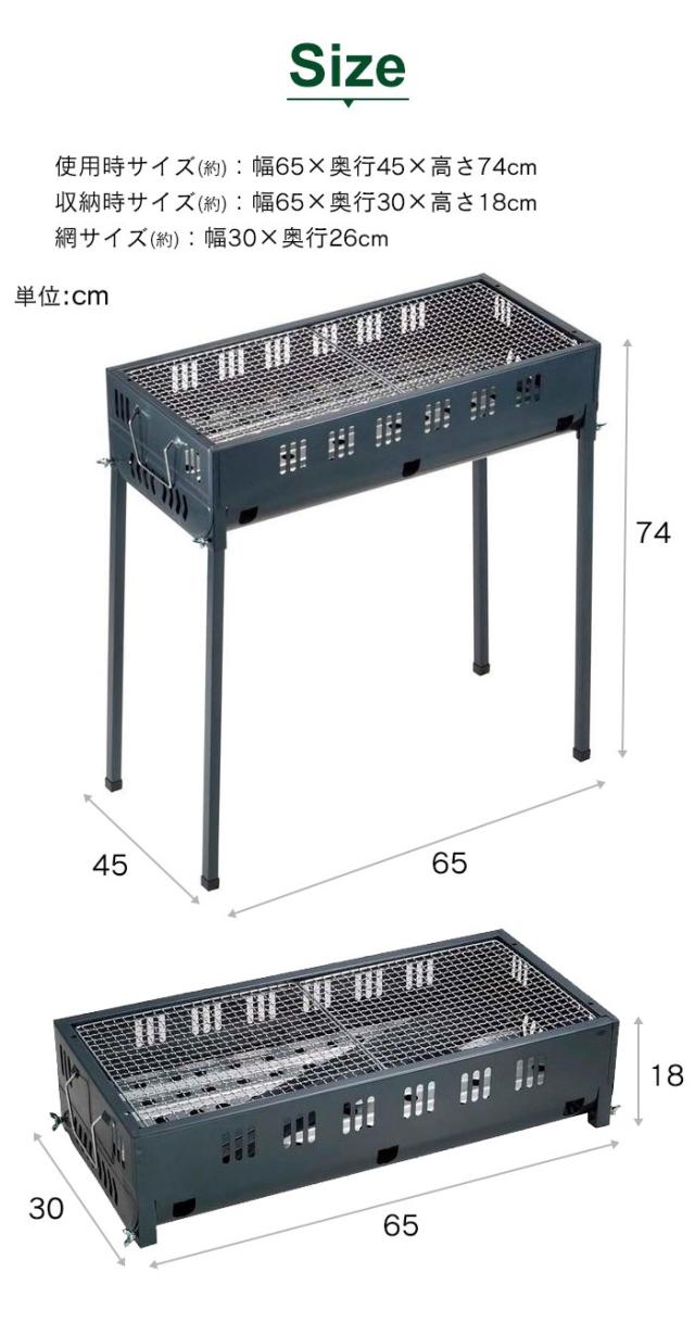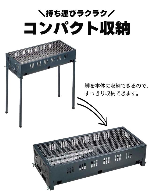 バーベキューコンロ コンパクト ロングタイプ 鉄製 4〜6人用 幅65 奥行45 高さ74 アミ焼き BBQ 網付き バーベキューグリル 焼肉