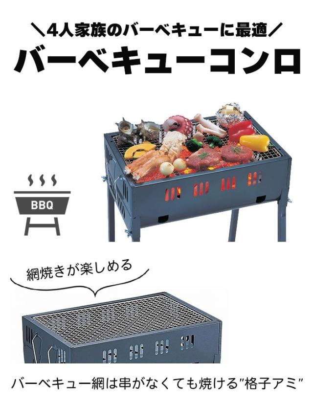| 3〜4人のバーベキューに最適なバーベキューコンロ。 アミ焼きがこれ1台で楽しめます。 持ち運びに便利なコンパクトサイズ。 |