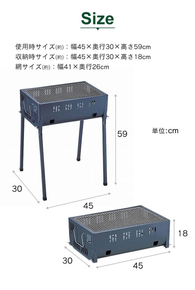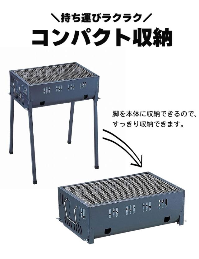 バーベキューコンロ コンパクト 3〜4人用 鉄製 幅45 奥行30 高さ59 アミ焼き BBQ アミ付き バーベキューグリル 焼肉 アウトドア