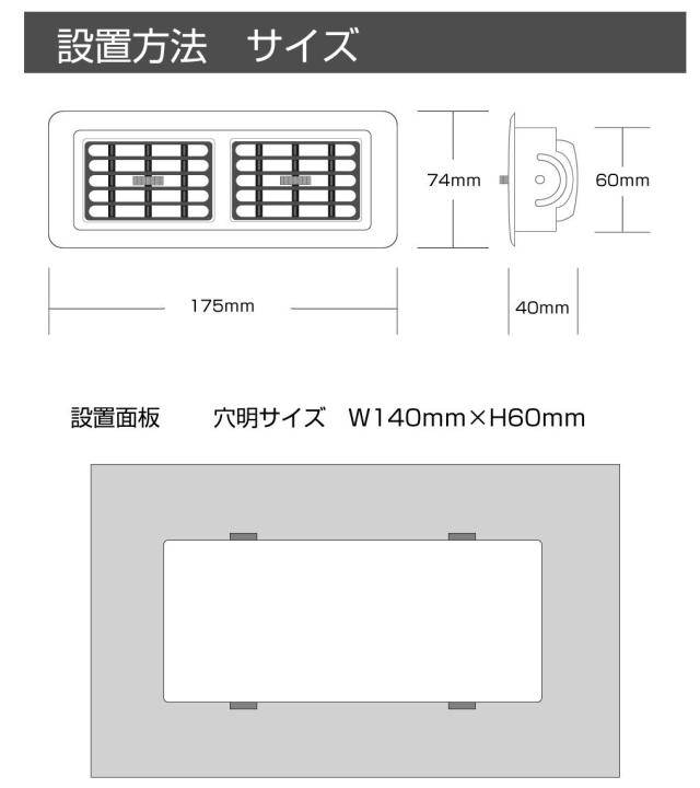 | サイズ | W175 × H74 × D40mm / 穴あけ W140 × H60mm |