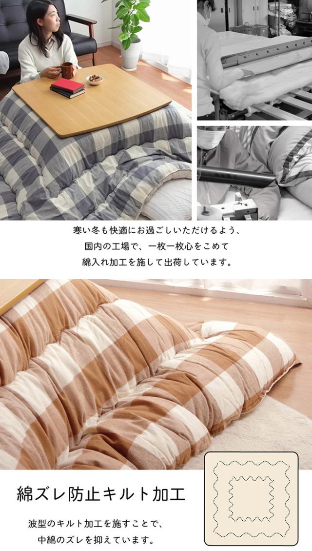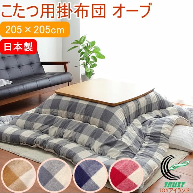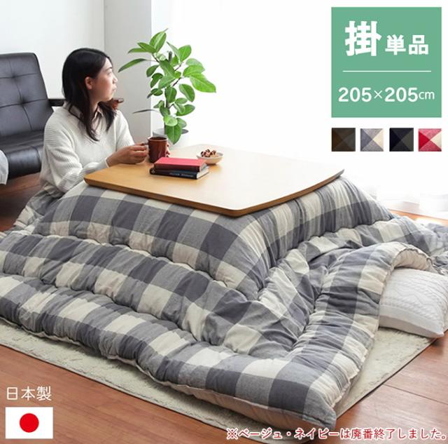 日本製のこたつ用掛布団 オーブ チェック柄 正方形 205×205cm 送料無料 日本製 チェック 炬燵 ポリエステル シンプル