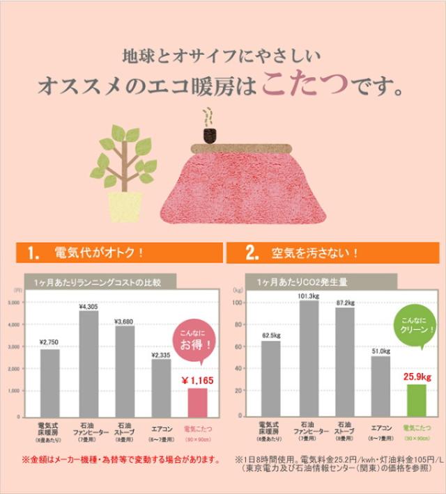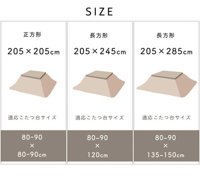 80〜90×80〜90cm程度のこたつ台に適応 |
