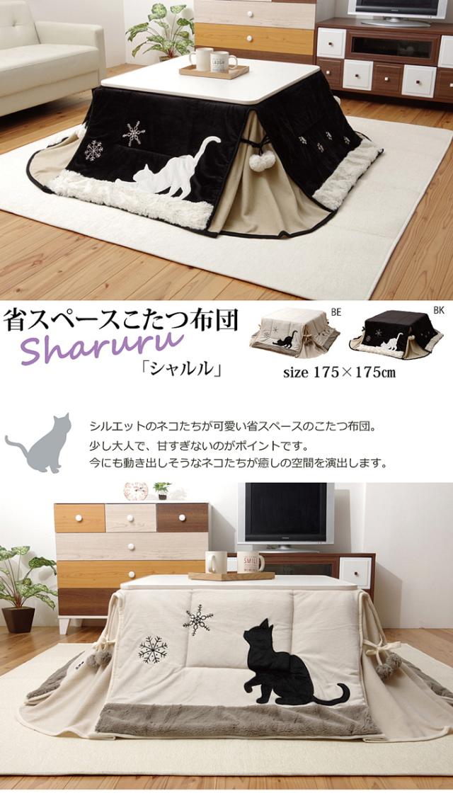 こたつ用掛布団 ネコ柄 シャルル省スペース 正方形 175×175cm 送料無料 猫柄 コンパクト 炬燵 薄手 軽い フリース