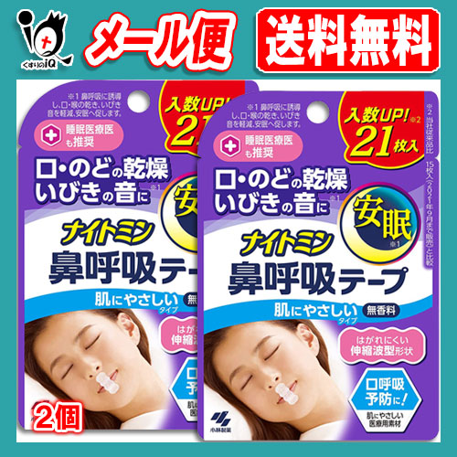 ナイトミン 鼻呼吸テープ 肌にやさしいタイプ 21枚入×2個【小林製薬】はがれにくい伸縮波型形状 口・のどの乾燥・いびきの音に 無香料