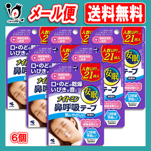 ナイトミン 鼻呼吸テープ 肌にやさしいタイプ 21枚×6個セット【小林製薬】はがれにくい伸縮波型形状 口・のどの乾燥・いびきの音に 無香料【訳あり特別価格】