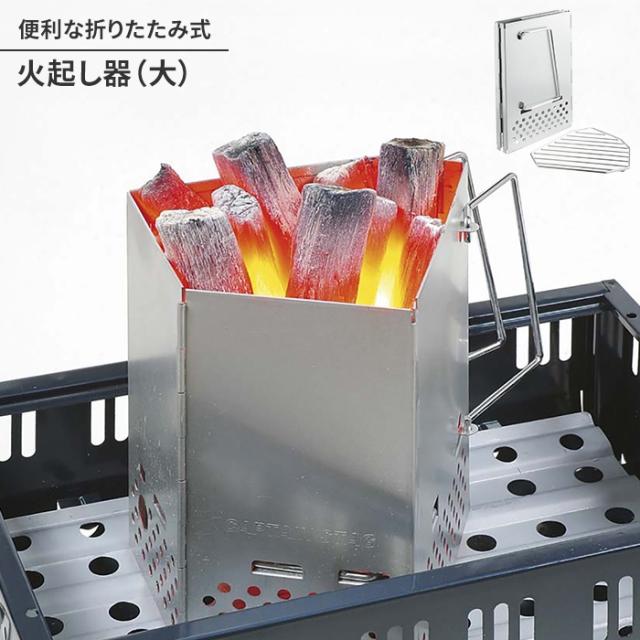 【値下げ】火起こし器 火おこし 折りたたみ コンパクト 大 幅23 奥行25 高さ28 煙突効果 炭 着火口付き BBQ 焚き火台 簡単 キャンプ 道具