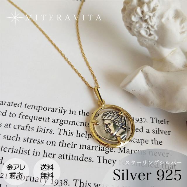スターリング シルバー 金属アレルギー対応 ポートレート コイン ペンダント ネックレス 925シルバー ネックレス ネックレス 金アレ対応 シルバー K18コーティング アクセサリー シンプルデザイン SUS316L miteravita ミテラヴィータ【N90】