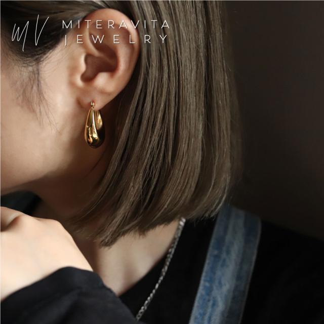 新定番デザイン!ぷっくりとしたしずく型のフープピアス♪