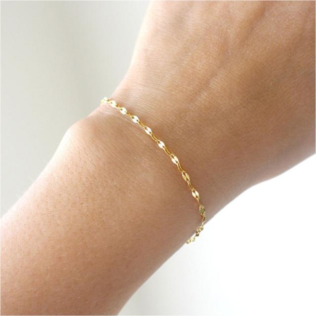 - ピンクゴールドのブレスレットは可愛さとオシャレさの両方を兼ね備えてます。カジュアルな服装にもドレスコートにもどちらに付けても違和感なく馴染みました。長さもぴったり。眺めているだけ嬉しい気持ちになります