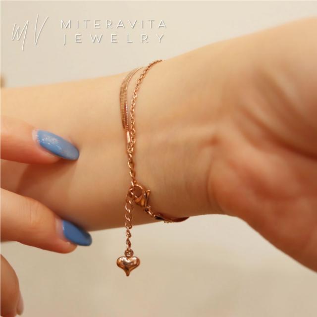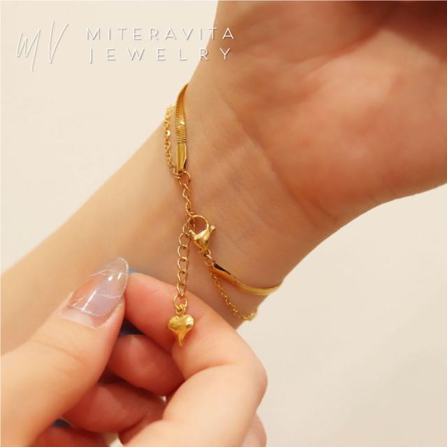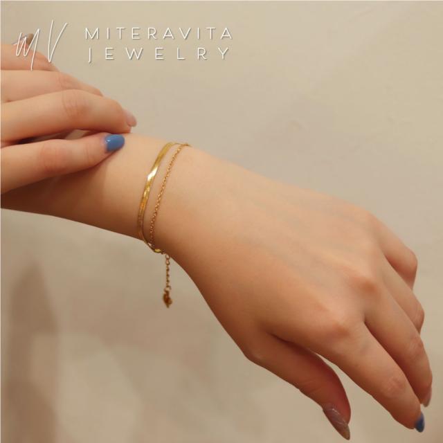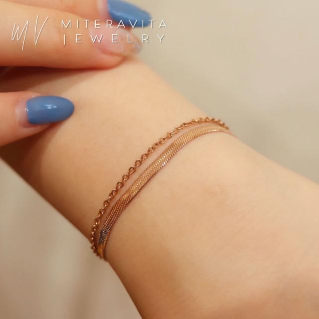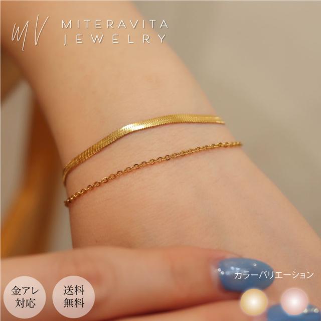 金属アレルギー対応 ブレスレット サージカルステンレス ブレスレット スネーク&小豆2連チェーン 【B8】 つけっぱなし アクセサリー 変色しない レディース シンプル アクセサリー 18K 金アレ SUS316L ゴールド miteravita ミテラヴィータ