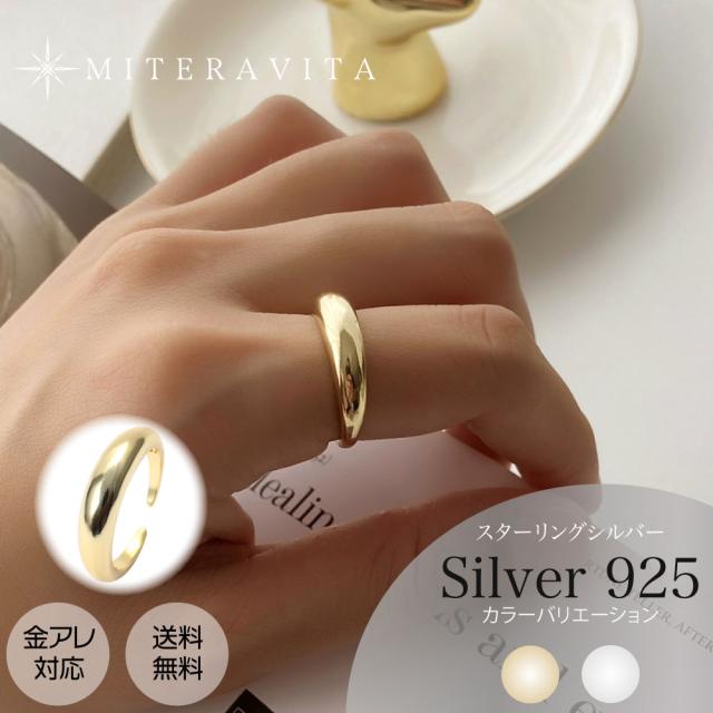 シルバー リング 925 スターリング シルバー リング シャイニー オープン リング 甲丸デザイン 肌に優しい シルバー素材 レディース シンプル リング 18K 金属アレルギー 対応 金アレ 対応 ゴールド シルバー miteravita ミテラヴィータ 韓国ファッション インスタ【R34】