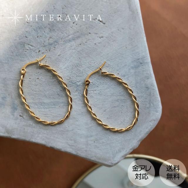 金属アレルギー対応 サージカルステンレス ピアス U字ソリッド フープピアス マット仕上げ つけっぱなしOK シンプル フープ ピアス 両耳用 18K 金アレ対応 肌に優しい 医療用素材の 高品質 ステンレス SUS316L レディース ゴールド miteravita ミテラヴィータ【P10】