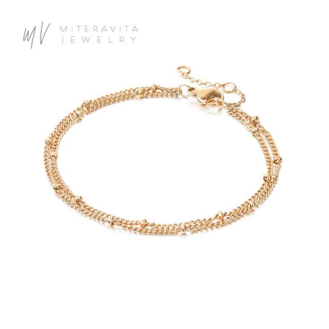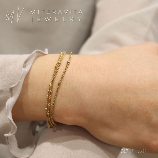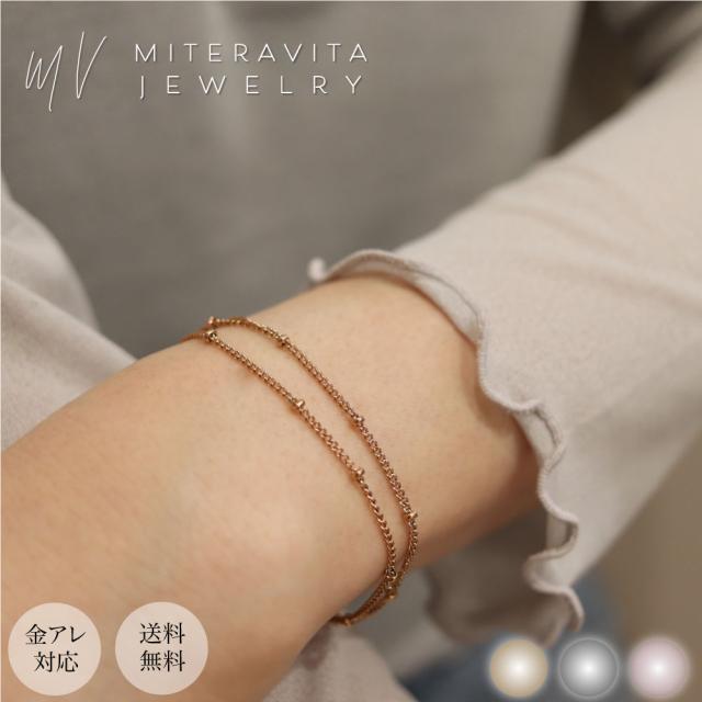 金属アレルギー対応 サージカルステンレス ブレスレット 細め ボールチェーンブレスレット 【B36】肌に優しい 医療用 ステンレス メンズ レディース ユニセックス シンプル アクセサリー 18K 金アレ SUS316L ニッケルフリー ゴールド miteravita ミテラヴィータ