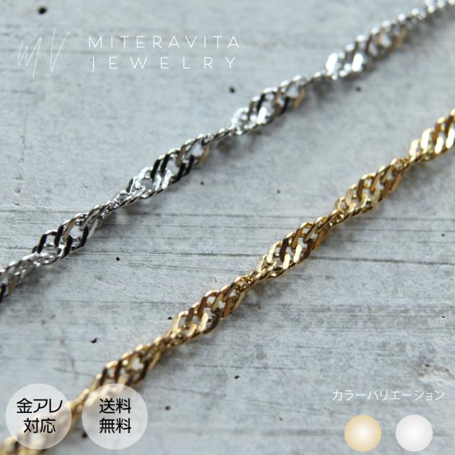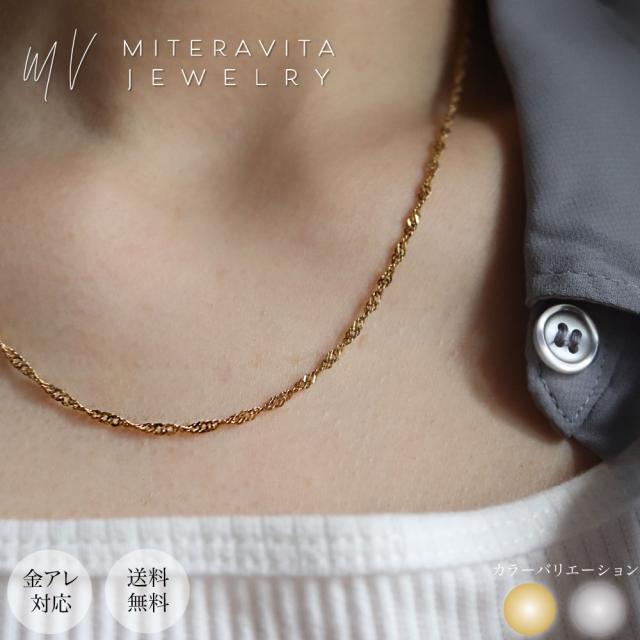 金属アレルギー対応 ネックレス サージカルステンレス ネックレス スクリュー スパイラル チェーン ネックレス 【N73】つけっぱなし ネックレス 変色しない レディース ネックレス SUS316L シルバー ゴールド アクセサリー 金属アレルギー対応miteravita ミテラヴィータ