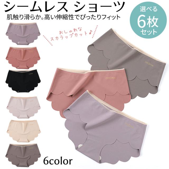 ショーツ レディース 下着女性ショーツのみ 6枚セット シームレスショーツ パンツ プレー ンショーツ 超盛 無地 スタンダード レース ノーマル 女性用 下着
