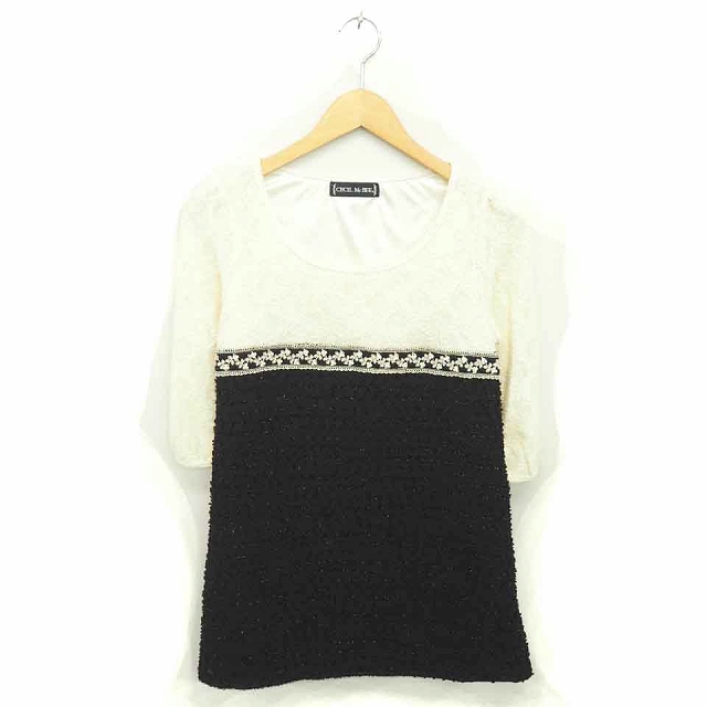 【中古】セシルマクビー ワンピース ミニ レース バイカラー ラメ ビジュー 五分袖 M アイボリー ブラック 黒 /TT31