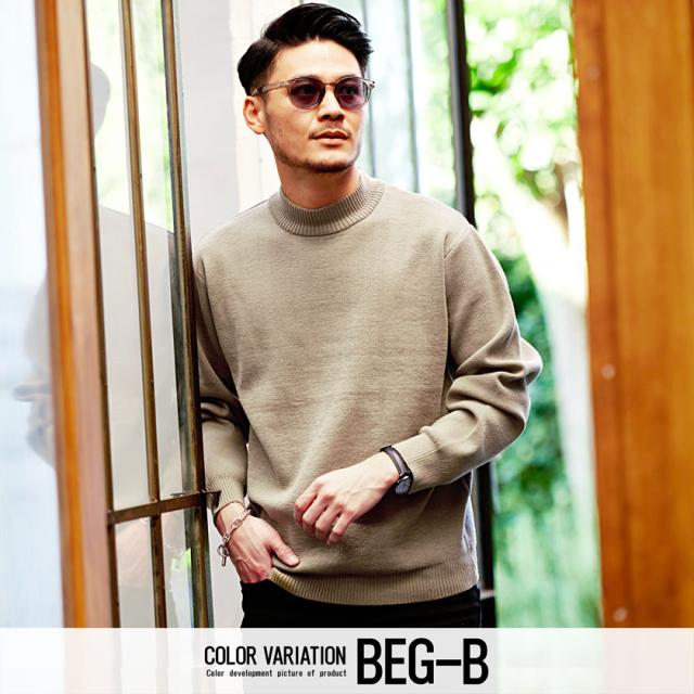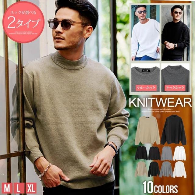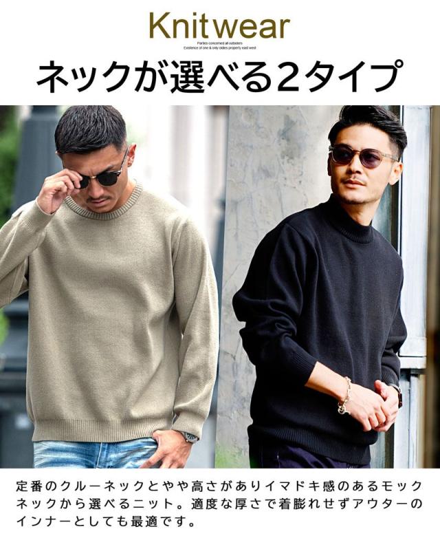ニット メンズ セーター ブランド 無地 トップス ミラノリブ あったか 暖かい クルーネック モックネック 大人 ブラック ベージュ グレー ホワイト 黒 白 カジュアル CavariA キャバリア 秋 冬 20代 30代 40代 メンズファッション 即日発送 [CAJP21-08]