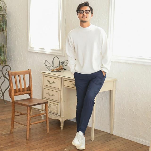 クルーネックはオールラウンドに使え、レトロなムードが今シーズン人気のモックネックが絶妙な品の良さを演出。