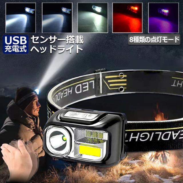 ヘッドライト 充電式 ledヘッドライト アウトドア用ヘッドライト SOSフラッシュ 8つ点灯モード 軽量 角度調整可 防災 停電時用 登山 夜釣り キャンプ アウトドア ハイキング