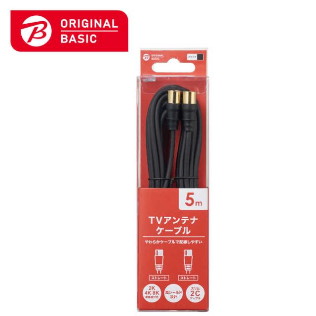 ORIGINALBASIC 4K8K対応 テレビ用アンテナケーブル 5m ブラック ストレートプラグ-ストレートプラグ OB-TCSS2C50BK